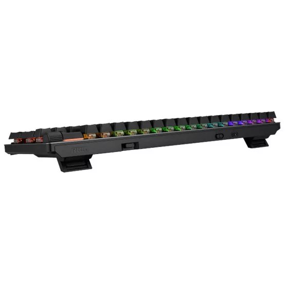 Angol kiosztású billentyűzet, mechanikus kapcsolókkal. Csatlakozás: USB 2.0, RF 2,4 GHz, Bluetooth 5.1 - Világítás: RGB - AURA Sync - Operációs rendszerek: Windows® 11