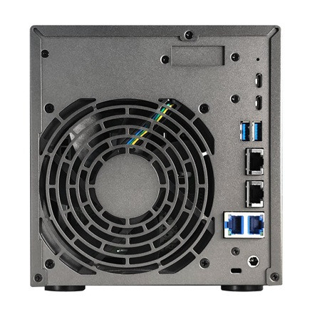 AMD Ryzen V3C14 (4x2,3GHz), 16GB, DDR5 - SODIMM, beépíthető meghajtók száma: 4db, 3,5", SATA3, M.2: 4db, RAID: RAID 0, 1, 5, 6, 10, JBOD, PCIe x4: 1db, USB4, USB-A 3.2 Gen2×1: 3db, LAN (2,5Gb/s): 2 port, LAN (10Gb/s): 2 port, fekete