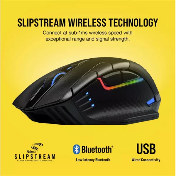 CORSAIR Vezetékes/Vezeték Nélküli Egér Gaming, DARK CORE RGB PRO, 8 programozható gomb, RGB, 18000dpi, fekete