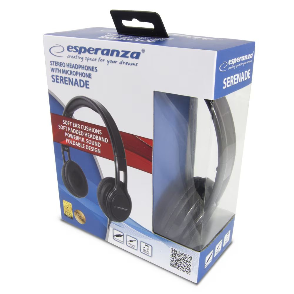A(z) Esperanza EH211K Serenade Stereo Headphones Black fejhallgató gondosan megtervezett ergonómiai formája biztosítja, hogy hosszú használat után se okozzon kellemetlenséget. Az állítható fejpánt és puha, lélegző fülpárnák garantálják a kényelmes illeszkedést. Ideális társ akár munkában, tanulásban, akár játékban.