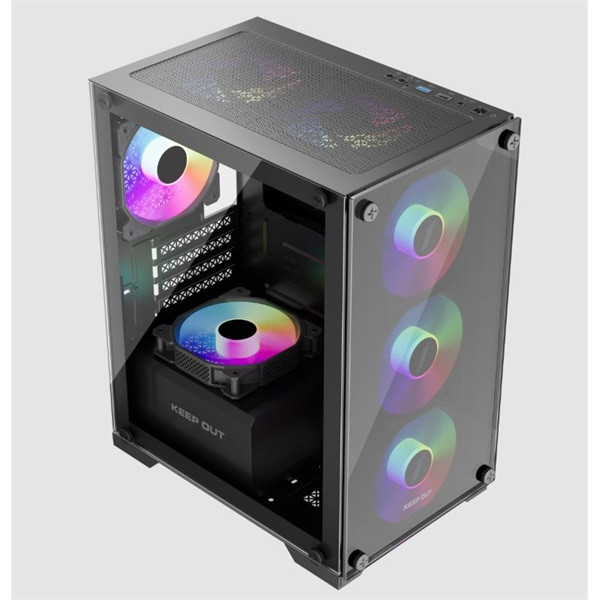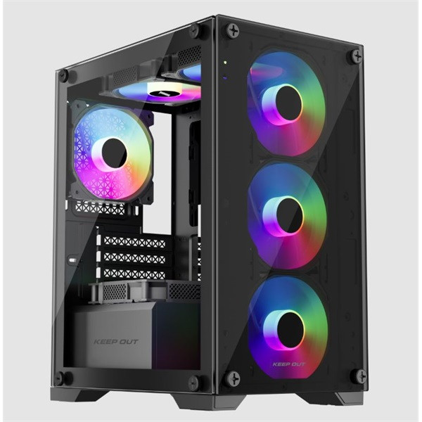 KEEP OUT Számítógépház - XC-201 GLASS (fekete, ablakos, 4x12cm ARGB venti, microATX, 1xUSB2.0, 1xUSB3.0)