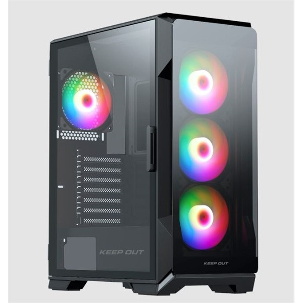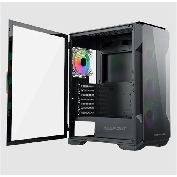 KEEP OUT Számítógépház - XC-901 PRO (fekete, ablakos, 4x12cm ARGB venti, microATX, 1xUSB3.0, 1xType-C)