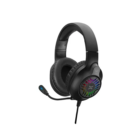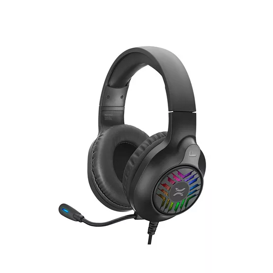 Vezetékes kialakítású fejhallgató mikrofonnal, Műbőr bevonatú párnák, Állítható fejpánt, 2 x 3.5 mm csatlakozó, USB csatlakozó a világításhoz, RGB világítás, Kábelhossz: 2.2m, Fonott szövetes bevonatú kábel.