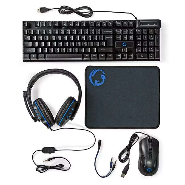 Nedis GCK51110BKUS gamer 5 az 1-ben készlet, Angol Billentyűzet, Headset, Egér, Egérpad és adapter kábel, QWERTY