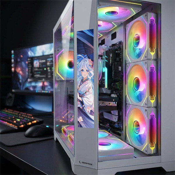 Rampage Számítógépház - NOVA (fehér; üveg; ATX; 9,17" TFT kijelző, 7x120mm RGB, 1xUSB3.0 + 1xUSB2.0)