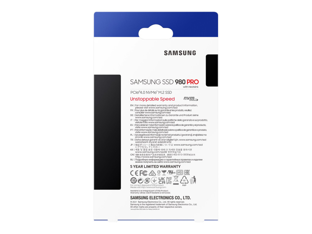 SAMSUNG 980 PRO 2TB SSD PCIe 4.0 heatsink 1200 TBW 7000MB/s olvasás 5100MB/s írás