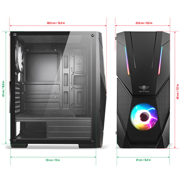 Spirit of Gamer Számítógépház - Rogue V RGB (fekete, ablakos, 2x12cm ventilátor, alsó táp,  ATX, 1xUSB3.0, 2xUSB2.0)