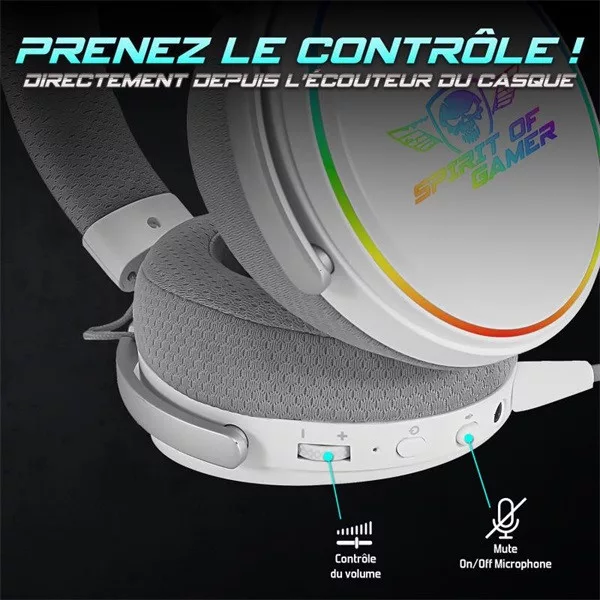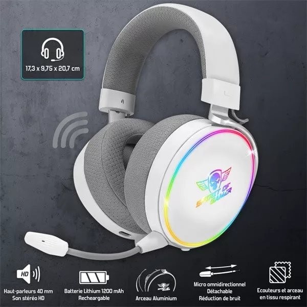 Spirit of Gamer Wireless Fejhallgató - MIC-XH1700W (MultiPlatform, mikrofon, hangerőszabályzó, nagy-párnás, fehér)