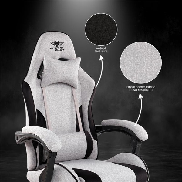 Spirit of Gamer szék - ARENA Light Grey (állítható magasság; párnázott kartámasz; PU; max.120kg-ig, világos-szürke)