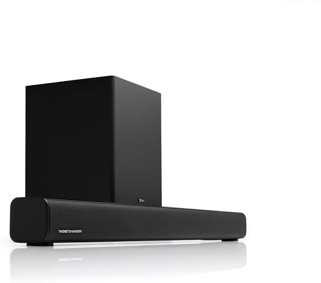 Emeld új szintre az otthoni szórakozást a Thonet & Vander DUNN soundbar rendszerrel, amely a letisztult dizájnt és a dinamikus hangzást ötvözi. A 2.1-es kialakításnak köszönhetően a készülék nemcsak tiszta és részletgazdag hangképet biztosít, hanem erőteljes mélyhangokat is, amelyek valódi moziélményt teremtenek a nappalidban.