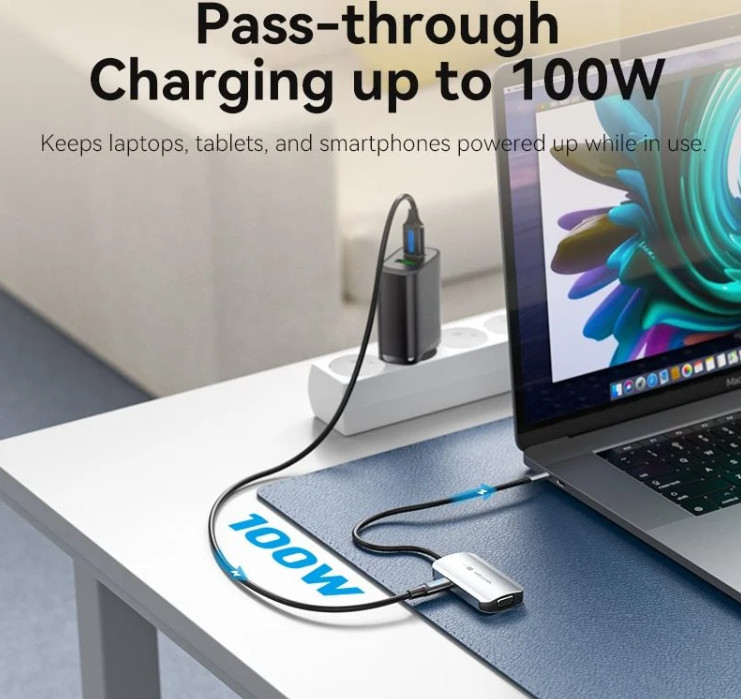 TQAHB *1xUSB-C apa *1xHDMI anya *1xVGA anya *1xUSB 3.0 anya *1xUSB-C PD töltőport *Bemenet: USB-C *Kimenet: HDMI / VGA / USB / PD *Felbontás (HDMI): 4K@30Hz *Felbontás (VGA): 1080p@60Hz *Adatátvitel: 5Gbps (USB 3.0) *Töltés: 100W PD *Kábel hossza: 0.15m *Burkolat: Alumínium ötvözet *Folyamat: Aranyozott csatlakozók *Plug and Play