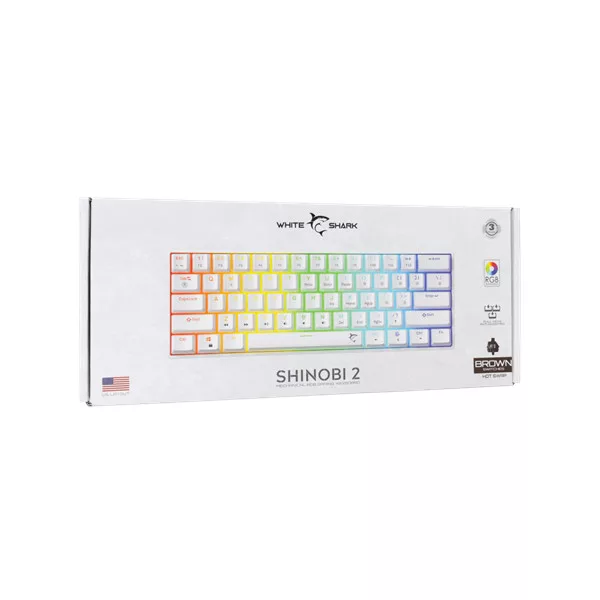 megnevezés White Shark SHINOBI-2/W-BR-US fehér mechanikus gamer hot swap billentyűzet, barna kapcsolók (angol)