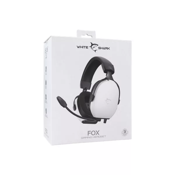 White Shark FOX-W, GH-2445W, gamer fejhallgató, mikrofonnal, fehér