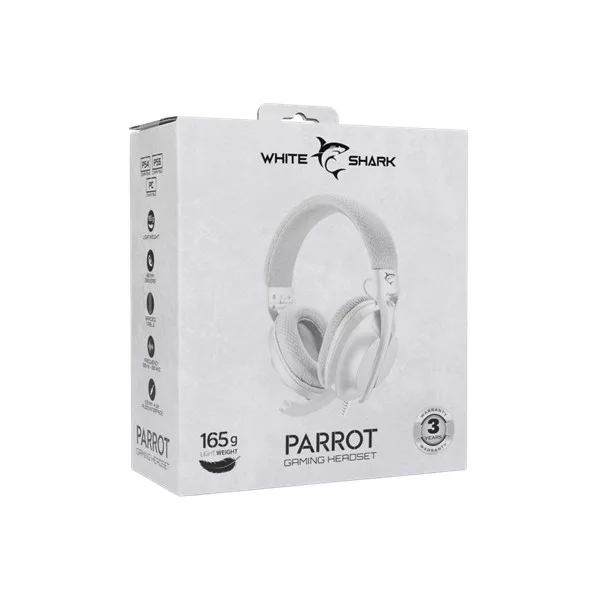 White Shark PARROT-W/G, GH-2440W/G mikrofonos gamer fejhallgató. Kiváló anyagokból,  kiváló fejhallgató, fehér/szürke színben! Minden körülmények között tiszta hangzást biztosít. Ergonomikus kerek fülpárnáinak köszönhetően hosszú használat mellett is kényelmes viselet, kizárja a külső háttérzajokat. Hangerőszabályzó a fejhallgatón található. PC, PS4/5, XBOX, MAC kompatibilis!!