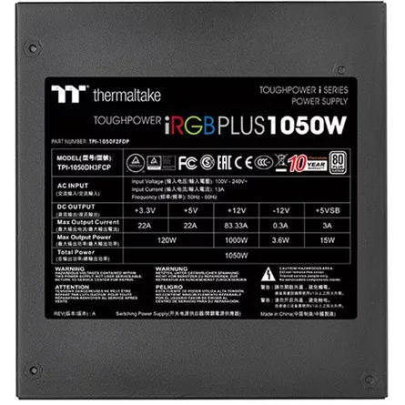 Thermaltake Toughpower iRGB PLUS ATX desktop tápegység 1050W 80+ Platinum BOX (Bontott!)